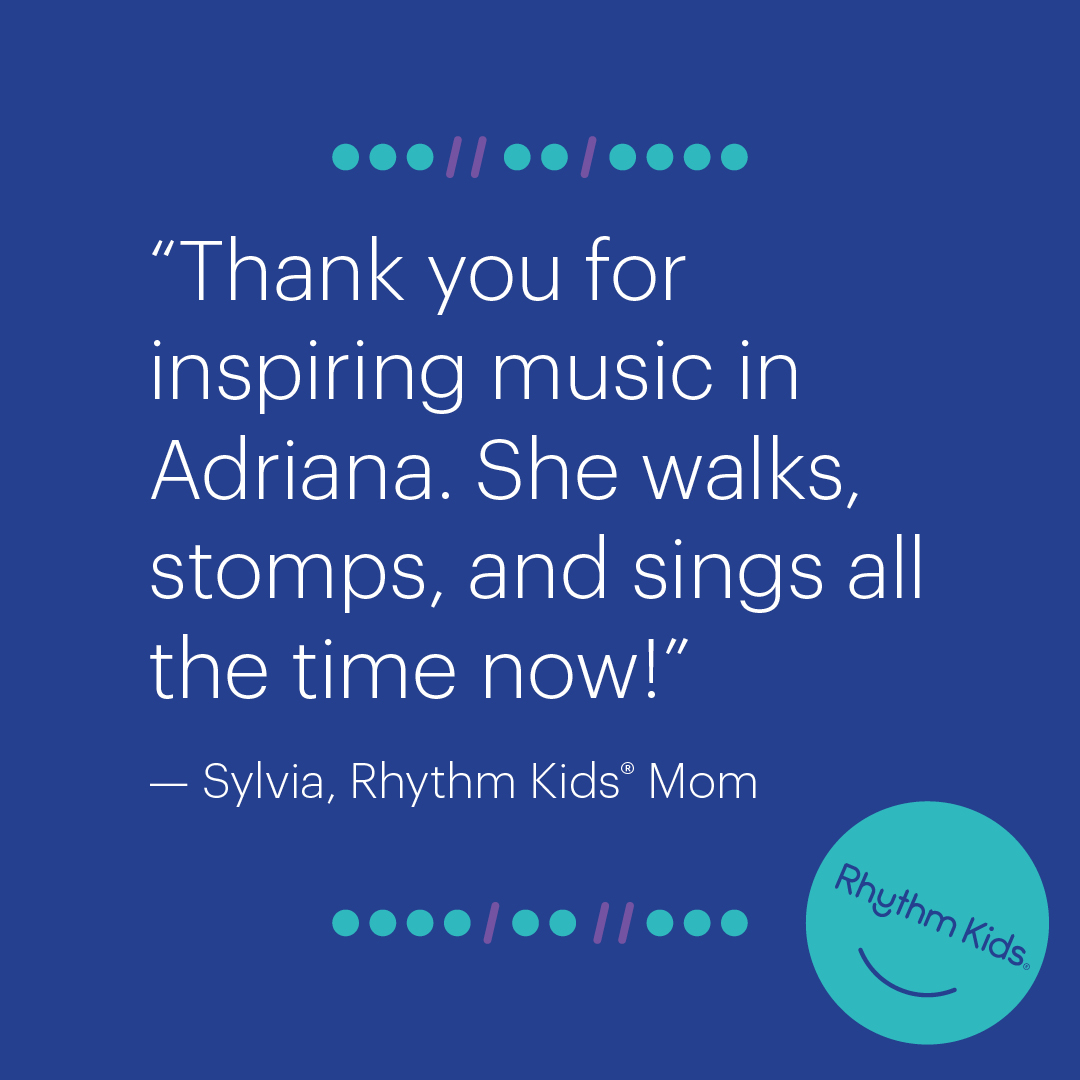 Each week we drum, sing, dance, play rhythm instruments and music-based games that reinforce, in a fun, playful manner, the rhythm patterns that we learn in class. Rhythm Kids™ guides children toward developmentally appropriate music and movement activities, where they can begin to take charge, lead others, and be musically creative, as they: